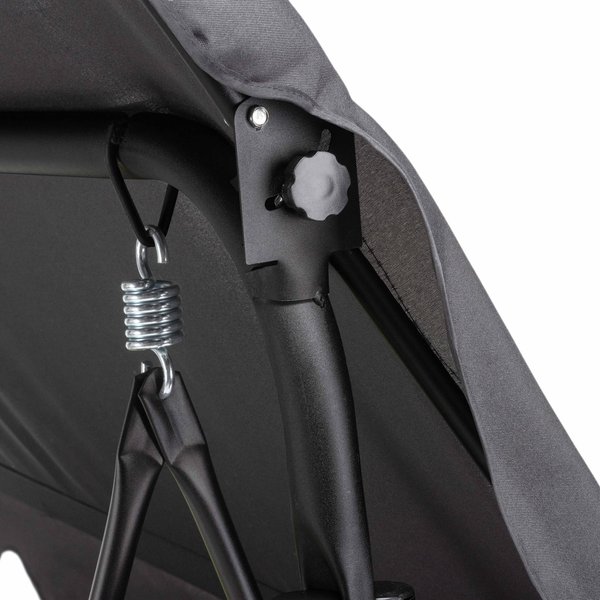 Regulowany daszek zapewnia skuteczną ochronę przed słońcem i lekkim deszczem, umożliwiając dostosowanie kąta nachylenia do aktualnych warunków pogodowych. Filtr UV 40 chroni przed nadmiernym nagrzewaniem się materiału, gwarantując przyjemny cień i komfortowy wypoczynek nawet w upalne dni.