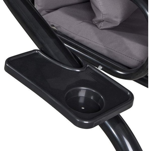 Stalowa rama została wykończona proszkowym malowaniem, które nadaje się odporności na uszkodzenia mechaniczne oraz na wilgoć. Poliestrowy materiał obicia jest wytrzymały i zapewnia odpowiedni przepływ powietrza. Linda posiada odporny na wodę i regulowany daszek, który pozwala na osłonę przed słońcem w zależności od pory dnia i jego położenia. W zestawie otrzymasz estetyczne poduszki, które dodatkowo uprzyjemnią wypoczynek. Nóżki posiadają antypoślizgowe wykończenie, które podnosi stabilność konstrukcji.