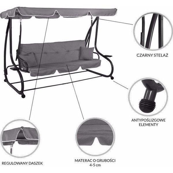 4-osobowa huśtawka ogrodowa Linda marki Springos to stabilny mebel ogrodowy, który w kilka chwil może zostać przekształcony w komfortową, bujającą się leżankę.