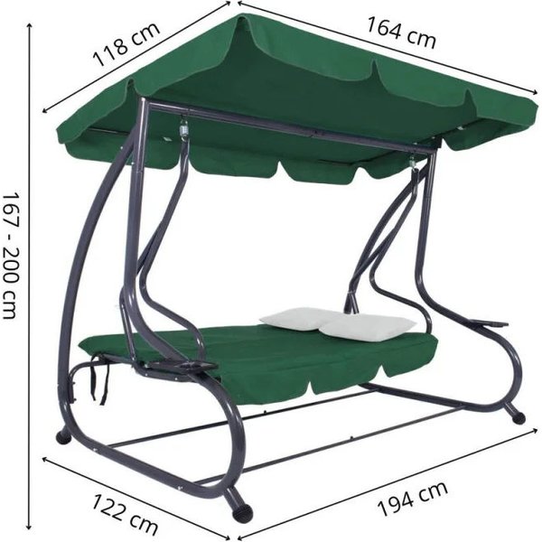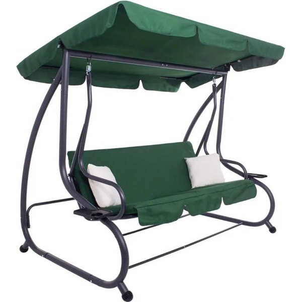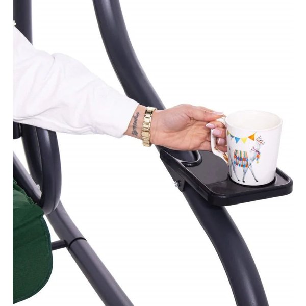 - w zestawie: stelaż huśtawki ogrodowej, materac na stelaż, 2 dodatkowe kremowe poduszki 33 x 33 cm, 2 uchwyty na napoje, regulowany daszek