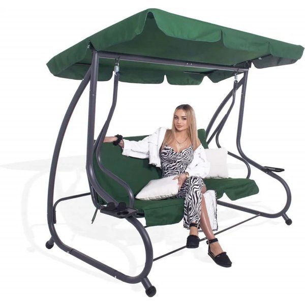 Huśtawka ogrodowa Venezia Springos to idealna propozycja dla osób poszukujących wygodnego i stylowego mebla do ogrodu. Konstrukcja z rur stalowych malowanych proszkowo zapewnia trwałość i stabilność. Daszek gwarantuje cień, nawet w najgorętsze dni. Siedzisko dla dwóch osób z poduszkami gwarantuje komfortowy wypoczynek. Dodatkowe boczne podłokietniki oraz możliwość przekształcenia huśtawki z siedziska na płaską konstrukcję sprawia, że produkt ten jest niezwykle funkcjonalny. Regulowane oparcie pozwala dostosować huśtawkę do własnych preferencji.