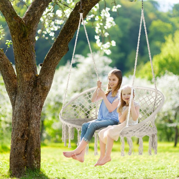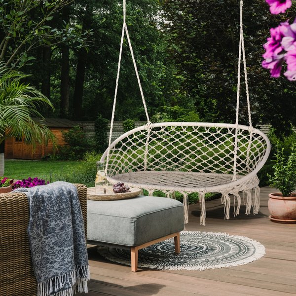 - Mocna konstrukcja: Zastosowanie grubego, plecionego materiału zwiększa wytrzymałość i stabilność, co przekłada się na długą żywotność huśtawki.
