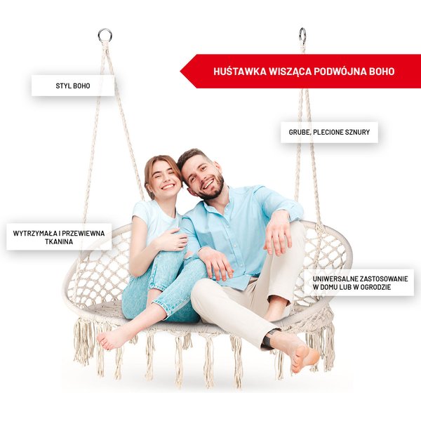 Chcesz zrelaksować się w swoim ogrodzie, na działce lub balkonie? Huśtawka wisząca podwójna Boho Outtec to Twój nowy sposób na wypoczynek.
