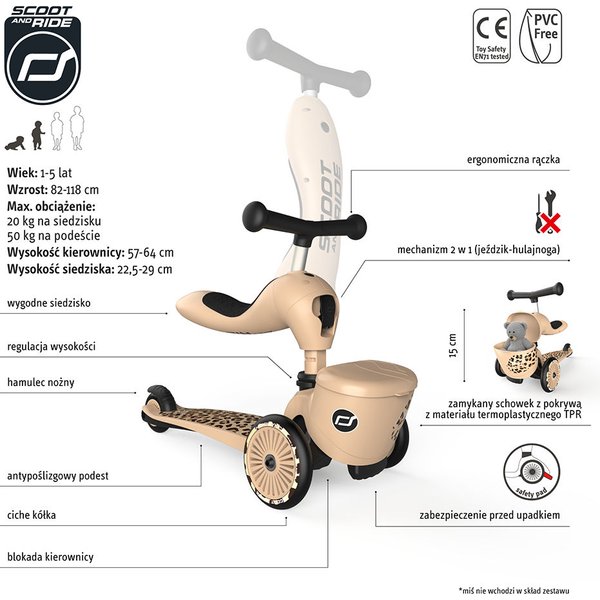 - możliwość użytkowania w formie jeździka lub hulajnogi.