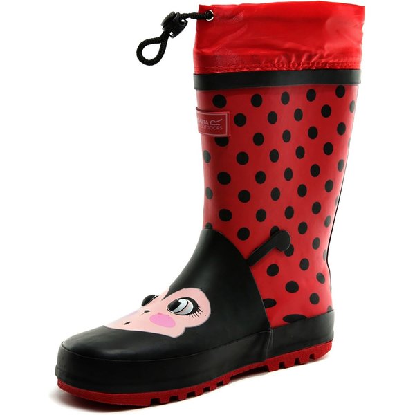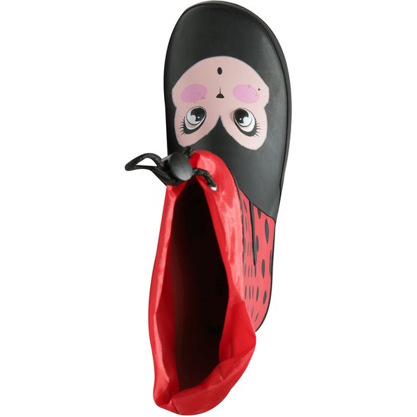 Ciekawa kolorystyka i design przykuwa wzrok i nawiązuje do dziecięcej wyobraźni. Kalosze są nieprzemakalne i trwałe, gdyż zostały wykonane z wulkanizowanej gumy. Ściągacz w górnej części cholewki umożliwia dobre dopasowanie i zapewnia suchość. Atutem jest amortyzowana wkładka, dzięki której stopy mniej się męczą.