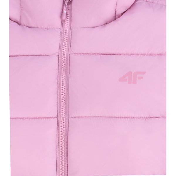 Kamizelka jest zapinana na praktyczny zamek. Ma ona kaptur, który pozwala dodatkowo ochronić kark i głowę przez mroźnym wiatrem. Możesz spodziewać się wysokiego komfortu cieplnego. Jest to efekt syntetycznego wypełnienia, które zapewnia pożądane ciepło bez nadmiernego obciążenia kurtki. Technologia 4F Warm sprawia, że komfort cieplny został zwiększony. Ta kamizelka to doskonały wybór dla dzieci i młodzieży. Logotyp marki dodaje całości sportowego charakteru.