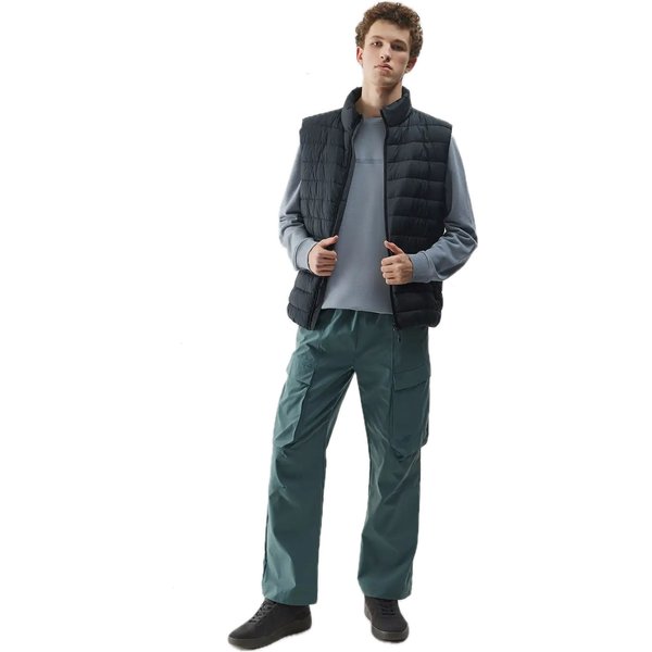 Ta męska kamizelka puchowa od marki 4F to idealne rozwiązanie dla każdego, kto ceni komfort i funkcjonalność w codziennym ubiorze. Jej lekka konstrukcja nie obciąża podczas ruchu, a jednocześnie skutecznie chroni przed chłodem, co czyni ją świetnym wyborem na aktywne dni w okresie przejściowym. Dzięki syntetycznemu wypełnieniu, zapewnia doskonałą izolację termiczną nawet w wilgotnych warunkach i szybko schnie. Kamizelka jest nie tylko praktyczna, ale także ekologiczna, wykonana częściowo z surowców pochodzących z recyklingu. Klasyczne pikowanie i prosty krój nadają jej uniwersalny styl, a praktyczne kieszenie boczne i zamek błyskawiczny na całej długości zapewniają wygodę użytkowania. Idealna jako element warstwowego ubioru, łatwa do przechowywania i doskonale dopasowująca się do sylwetki.