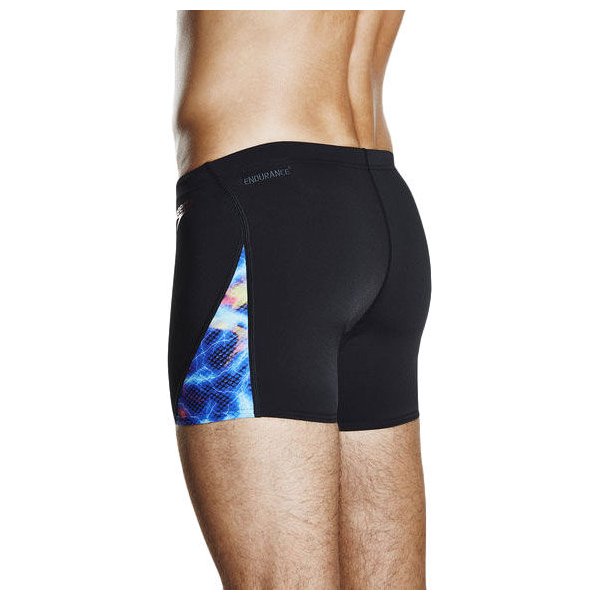 Szorty ozdobiono elektrycznym nadrukiem, a ich konstrukcja na celu zapewnia gładki i hydrodynamiczny profil pływaka w wodzie. Tkanina, z której wykonano kąpielówki jest wysoce odporna na działanie chloru oraz promieni słonecznych, co pozwala na ich użytkowanie także na świeżym powietrzu. Po zakończonym treningu materiał wysycha w oka mgnieniu, a zastosowane panele V-kształtne zwiększają swobodę i poziom dopasowania. O ten ostatni dba także elastyczna talia z możliwością dodatkowej regulacji. Storm Wave Allover Digital V Panel Aquashort wykonano w technologii Endurance+, która utrzymuje nasycony kolor kąpielówek oraz sprawia, że wykazują one wysoką odporność na uszkodzenia mechaniczne.
