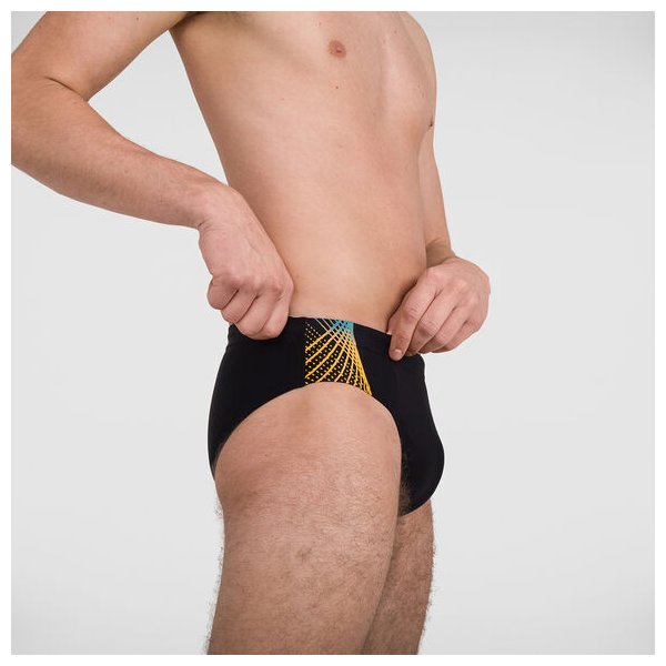 Męskie kąpielówki Tech Panel marki Speedo sprawdzą się podczas każdej aktywności w wodzie. Są doskonałym wyborem zwłaszcza na trening, ponieważ wykonane są z elastycznego materiału, który w żaden sposób nie krępuje ruchów. Do tego slipki są odporne na działanie chloru i promieniowanie słoneczne, dzięki czemu będą Ci służyć przez długi czas w niezmienionym stanie.