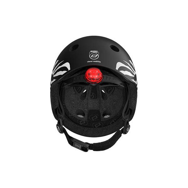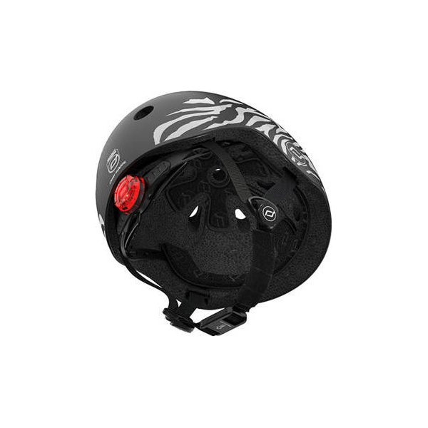 Kask ten może być stosowany przez pierwsze pięć lat życia maluszka, dzięki wygodnej regulacji za pomocą pokrętła. Dużym udogodnieniem jest tu obecność 11 otworów wentylacyjnych obszytych moskitierą, aby żaden owad nie zaplątał się we włosy dziecka. Zapewniają one odpowiedni przepływ powietrza, nie dopuszczając do nadmiernego pocenia się główki. W tyle kasku znajduje się jeszcze ledowa lampka z 3 trybami świecenia, którą warto włączyć, kiedy zrobi się ciemno.