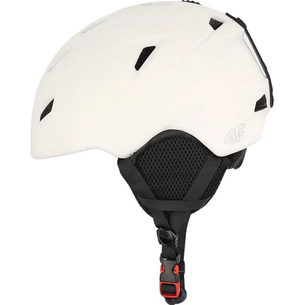 Kask narciarski od 4F to idealne rozwiązanie dla miłośników sportów zimowych, zapewniające nie tylko bezpieczeństwo, ale i komfort. Dzięki innowacyjnej konstrukcji In-Mould, kask skutecznie pochłania wstrząsy, jednocześnie będąc niezwykle lekki. Zmienna wentylacja pozwala na doskonałą termoregulację, co jest kluczowe podczas intensywnych aktywności. Odpinana, miękka wyściółka nie tylko minimalizuje wstrząsy, ale również ułatwia utrzymanie czystości. System mocowania gogli stabilizuje okulary, a regulacja obwodu sprawia, że kask idealnie dopasowuje się do każdej głowy. Dodatkowo, odpinane nauszniki i regulowany pasek pod brodą z zapięciem na klamrę z czerwonym akcentem zwiększają komfort użytkowania.