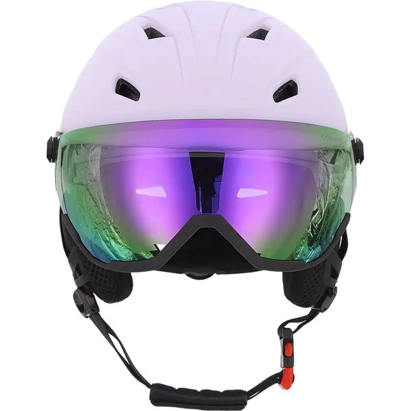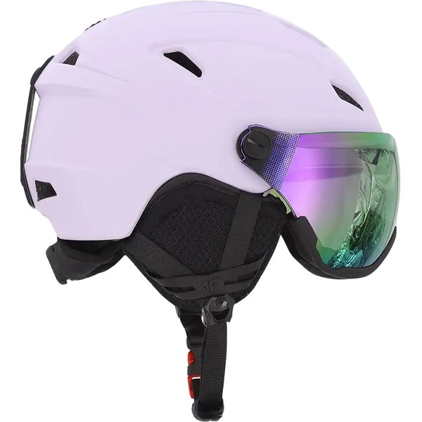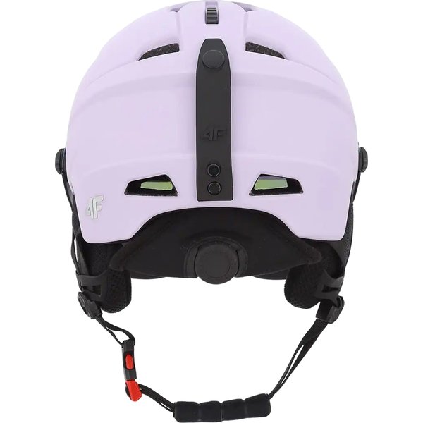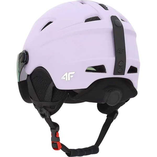 Jedną z kluczowych zalet kasku jest jego zaawansowany system wentylacji. Zmienna wentylacja umożliwia efektywną regulację termiczną, co pozwala na utrzymanie optymalnej temperatury wewnątrz kasku w różnych warunkach pogodowych. Kolejną istotną cechą kasku narciarskiego 4F jest jego zintegrowany system gogli. Wbudowane gogle oferują 100% ochronę przed szkodliwym promieniowaniem UV dzięki filtrowi UV400, co jest kluczowe dla ochrony oczu podczas jazdy w pełnym słońcu. Dodatkowo, specjalna powłoka przeciw zarysowaniom zapewnia trwałość i przejrzystość widzenia przez długi czas.