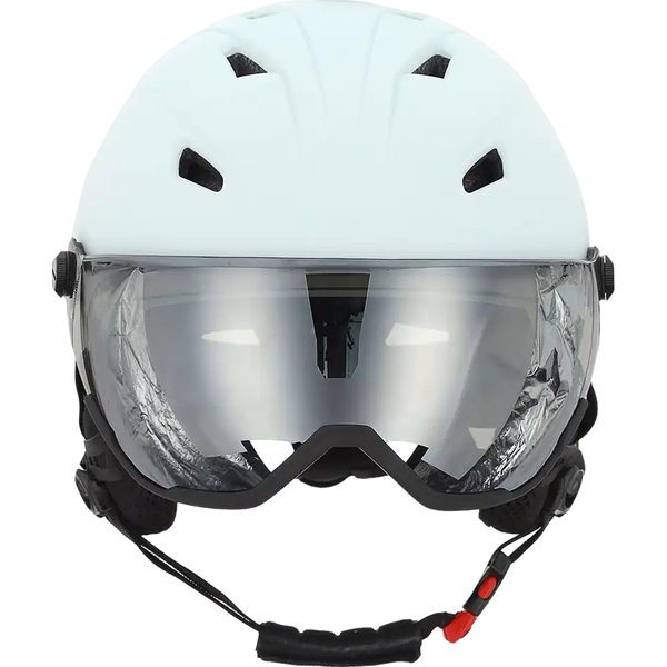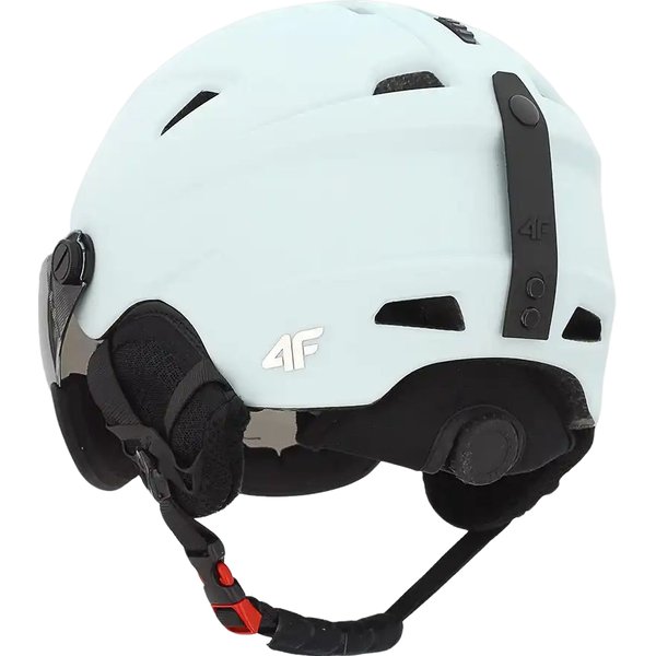 Jedną z kluczowych zalet kasku jest jego zaawansowany system wentylacji. Zmienna wentylacja umożliwia efektywną regulację termiczną, co pozwala na utrzymanie optymalnej temperatury wewnątrz kasku w różnych warunkach pogodowych. Kolejną istotną cechą kasku narciarskiego 4F jest jego zintegrowany system gogli. Wbudowane gogle oferują 100% ochronę przed szkodliwym promieniowaniem UV dzięki filtrowi UV400, co jest kluczowe dla ochrony oczu podczas jazdy w pełnym słońcu. Dodatkowo, specjalna powłoka przeciw zarysowaniom zapewnia trwałość i przejrzystość widzenia przez długi czas.