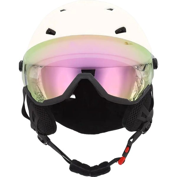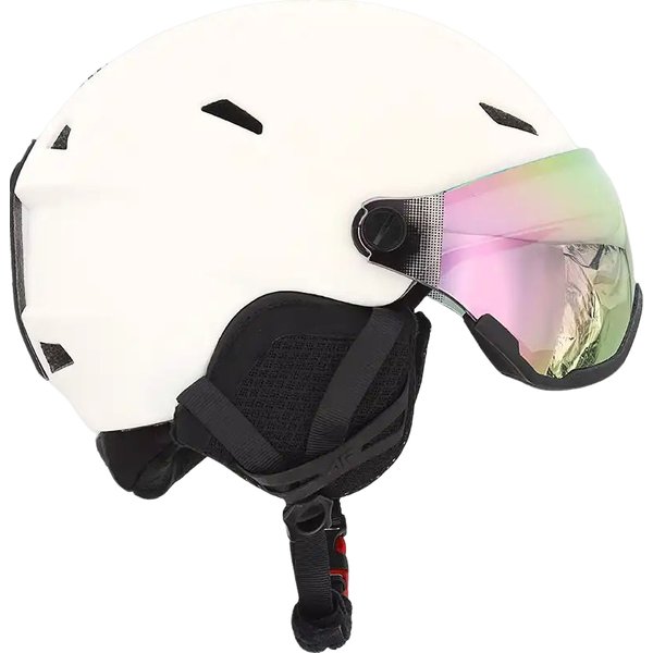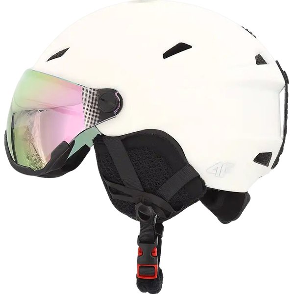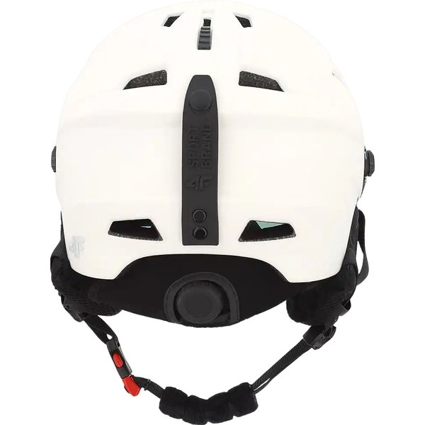 Jedną z kluczowych zalet kasku jest jego zaawansowany system wentylacji. Zmienna wentylacja umożliwia efektywną regulację termiczną, co pozwala na utrzymanie optymalnej temperatury wewnątrz kasku w różnych warunkach pogodowych. Kolejną istotną cechą kasku narciarskiego 4F jest jego zintegrowany system gogli. Wbudowane gogle oferują 100% ochronę przed szkodliwym promieniowaniem UV dzięki filtrowi UV400, co jest kluczowe dla ochrony oczu podczas jazdy w pełnym słońcu. Dodatkowo, specjalna powłoka przeciw zarysowaniom zapewnia trwałość i przejrzystość widzenia przez długi czas.