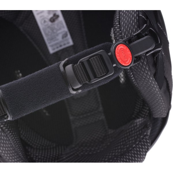 Zamek blokujący, pozwalający na wielostopniową regulację, używając tylko jednej ręki. Dzięki niemu nie ma szans na przypadkowe odpięcie czy obrócenie się kasku w razie upadku. Jednocześnie miękki dla skóry pasek wyposażono w bezuciskową wyściółkę. Dla komfortu i bezpieczeństwa!
