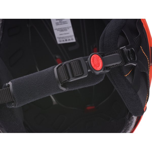 Zamek blokujący, pozwalający na wielostopniową regulację, używając tylko jednej ręki. Dzięki niemu nie ma szans na przypadkowe odpięcie czy obrócenie się kasku w razie upadku. Jednocześnie miękki dla skóry pasek wyposażono w bezuciskową wyściółkę. Dla komfortu i bezpieczeństwa!