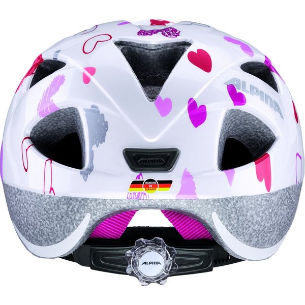 Dziecięcy kask rowerowy Alpina Ximo zostanie doceniony przez każdą dziewczynkę za niesamowicie ciekawy i oryginalny wzór! Posiada 12 otworów wentylacyjnych, które zapewniają przepływ powietrza gwarantując komfort jazdy także podczas długich podróży. W przednich otworach znajdują się siatki, które uchronią najmłodszych przed niechcianymi owadami pod kaskiem! Wykonanie kasku w technologii Inmold oznacza, że trwałe połączenie warstw skutkuje otrzymaniem trwałej i lekkiej konstrukcji.