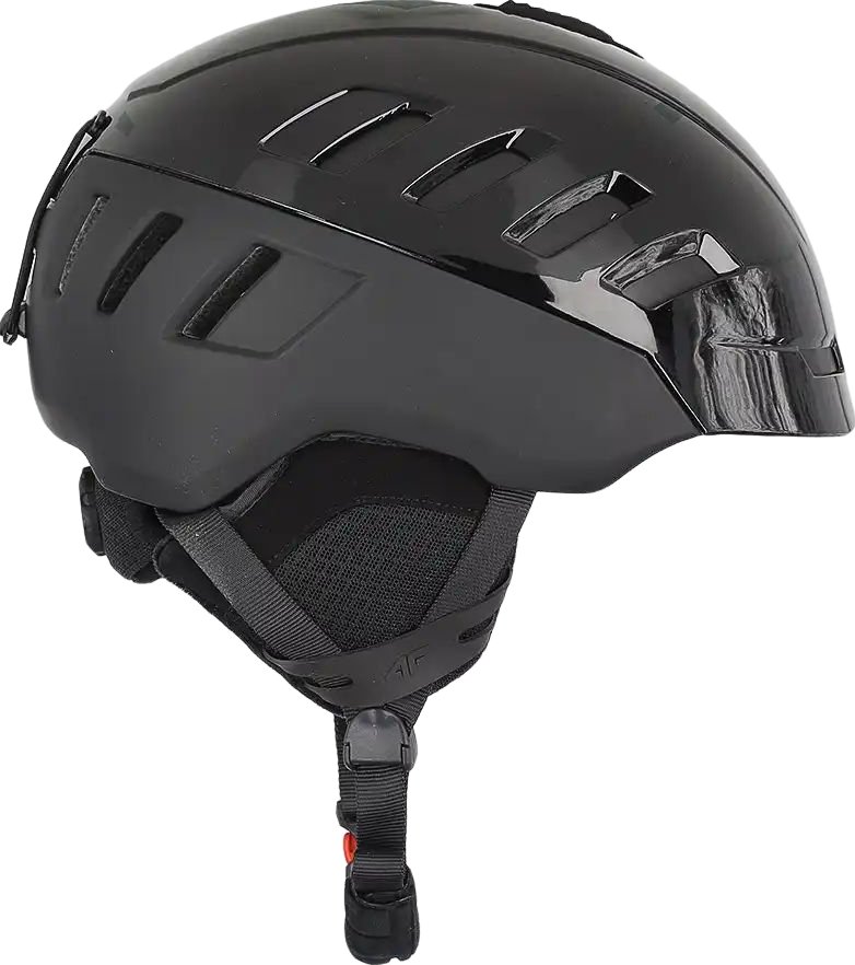 Kask snowboardowy od marki 4F zapewnia użytkownikowi maksymalne bezpieczeństwo i komfort dzięki solidnej konstrukcji hybrydowej. Dzięki technologii Hybrid In-Mould, kask idealnie łączy lekkość z wytrzymałością. Regulowana wentylacja zapewnia optymalną cyrkulację powietrza, co zwiększa komfort podczas intensywnego zjazdu. System mocowania gogli i regulacja obwodu pozwalają na idealne dopasowanie do każdej głowy, a odpinana wyściółka i nauszniki zapewniają wygodę oraz łatwość w czyszczeniu. Kask spełnia normy bezpieczeństwa EN: 1077.
