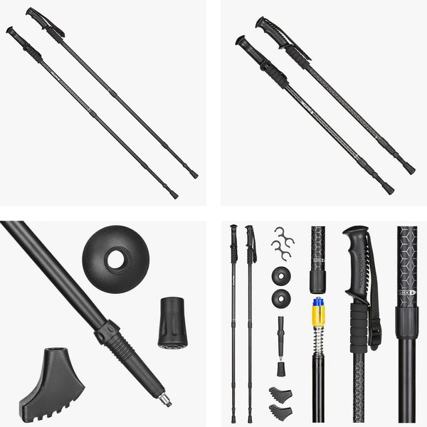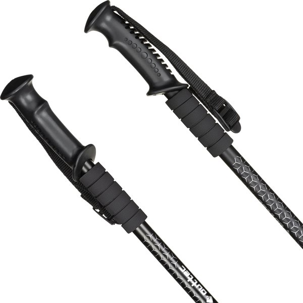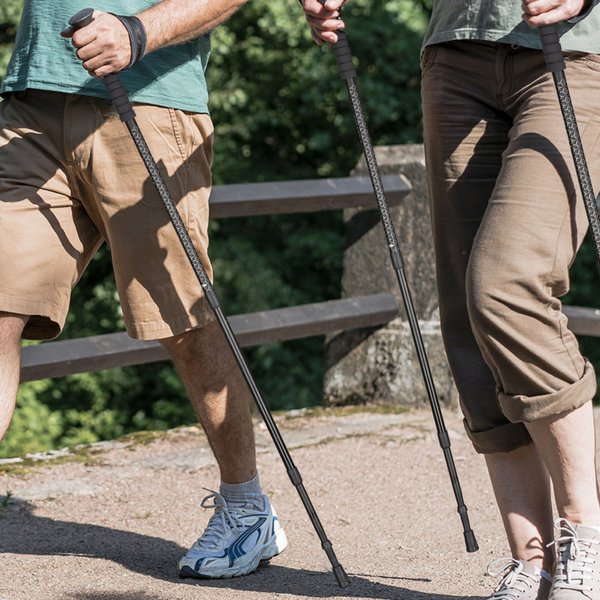 - Precyzyjna regulacja teleskopowa: 3-segmentowa budowa z możliwością regulacji długości w zakresie 65–135 cm pozwala na precyzyjne dopasowanie kijów do wzrostu użytkownika oraz umożliwia ich współdzielenie przez więcej niż jedną osobę.