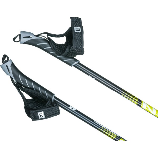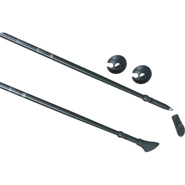 Rękawiczka wykonana jest z miękkiego i wytrzymałego materiału wzmacniana w miejscach narażonych na przetarcia. Użyty materiał nie powoduje otarć skóry. Rękawiczka posiada regulacje wielkości na rzep . Model wyposażony jest w wiodiowe groty o walcowym kształcie oraz komplet talerzyków i wzmacnianych nakładek gumowych na twardą nawierzchnie. Wszystkie elementy kija są wymienne i dostępne w serwisie części zamiennych.