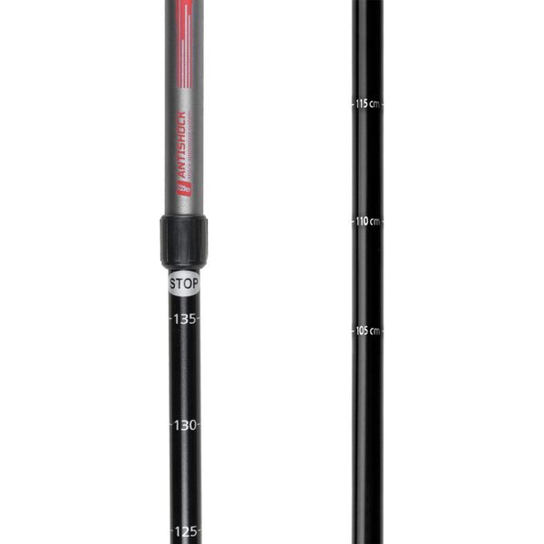 Dzięki solidnej i lekkiej konstrukcji, która powstała przy użyciu aluminium 6061, możesz cieszyć się pełnym bezpieczeństwem i najwyższą jakością. 3-sekcyjna regulacja długości, pozwoli Ci indywidualnie dopasować kije pod siebie. Natomiast wsparcie systemem Anti-Shock, który absorbuje wstrząsy, zagwarantuje Ci pełen komfort użytkowania, zwłaszcza podczas stromych podejść na nierównym terenie.