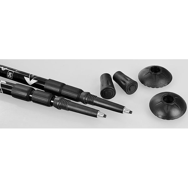 W zestawie są też nakładki na grot i talerzyki. Dostosujesz więc końcówkę do terenu, po którym maszerujesz, a talerze zabezpieczą kij przed zbyt głębokim wbiciem się w ziemię. Teraz nie ma już wymówek: czy to na deptaku, w lesie czy w centrum miasta - marsz z kijami trekkingowymi Antishock Areto jest zawsze w Twoim zasięgu.