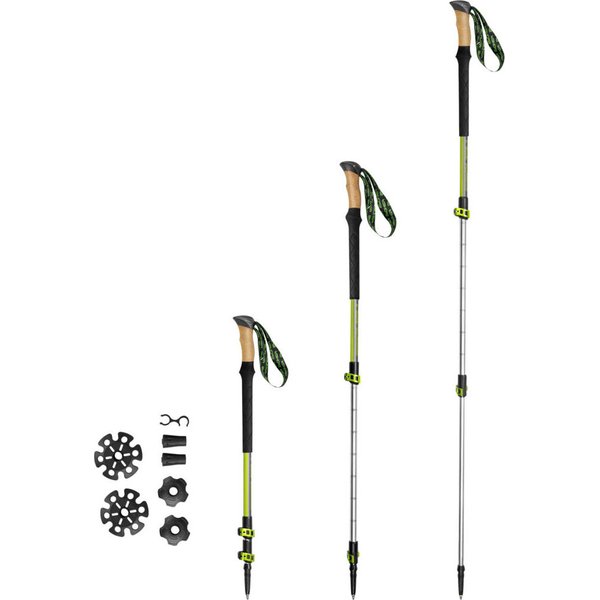 Kije Compass to złożeniu mają długość zaledwie 62cm, co sprzyja wygodzie ich transportowania. Rękojeść wykonano z połączenia korka i pianki EVA, co przekłada się na rewelacyjny chwyt i komfort nawet najdłuższych wędrówek. Materiał wykonania, czyli aluminium zapewnia wytrzymałość kijów idącą w parze z ich niską wagą. Widiowy grot sprawia, że kije będą Ci służyły przez wiele turystycznych sezonów. Dołączone gumowe końcówki pozwolą na komfortowe pokonanie twardych nawierzchni, co więcej, z kijami otrzymasz także zestaw zimowych i letnich talerzyków.