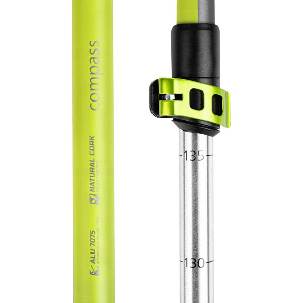 Alu Click Lock - system wygodnego zapinania sekcji kija. Aby zablokować sekcję wystarczy użyć dźwigni. Zastosowanie klamer z aluminium podwyższa wytrzymałość i żywotność systemu blokady sekcji kija. Zewnętrzny system zapinania sekcji kija szczególnie polecany jest osobom planującym wędrówki w różnych warunkach atmosferycznych, w tym zimą. Dzięki swej konstrukcji, w łatwy sposób umożliwia zmianę długości kija bez konieczności ściągania rękawiczek.