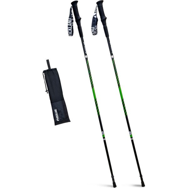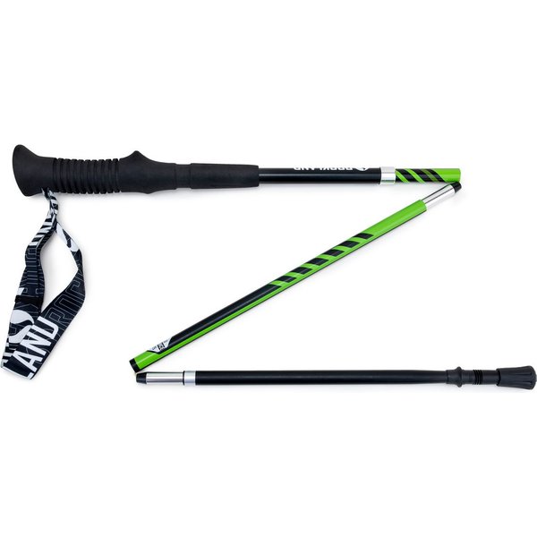 Model wykonano z aluminium 7075, co pozwala utrzymać niską wagę akcesorium. Ponadto materiał jest wyjątkowo trwały, co w połączeniu z solidnym wykonaniem przekłada się na wytrzymały produkt, który będzie sprawdzał się przez długi czas. Składana konstrukcja szybko się rozkłada dzięki przeprowadzonej wewnątrz lince. Zatrzask sprawia, że kijki pozostają sztywne i nie składają się samoistnie. Po złożeniu zajmują mało miejsca, więc łatwo przytroczyć je do plecaka lub pasa biegowego. Wykonany z sprężystej pianki EVA chwyt z przedłużonym otokiem dobrze leży w dłoni i nie wypada. Widiowe końcówki są odporne na zużywanie. Sprawdzą się jako kijki trekkingowe lub tourowe.
