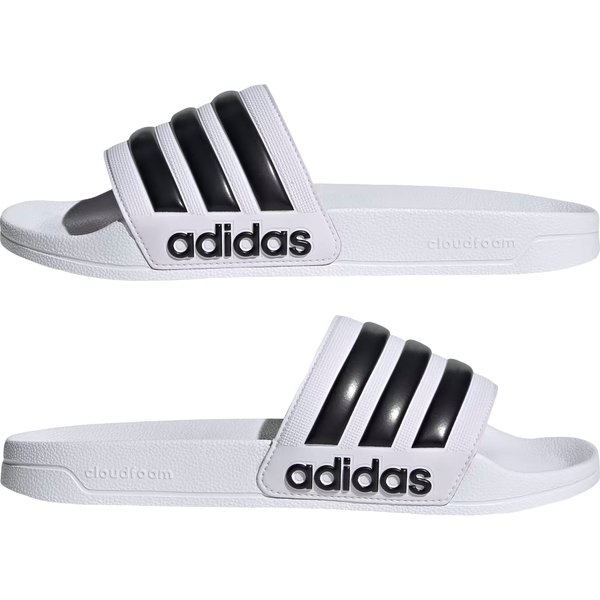 Klapki Adilette Shower Adidas to idealne obuwie na basen, pod prysznic i na co dzień. Szeroki pasek zapewnia stabilność oraz łatwe zakładanie i zdejmowanie. Lekka, profilowana wkładka Cloudfoam zapewnia komfort stopom przez cały dzień, a tekstura na podeszwie dodaje przyczepności. Logo na pasku dodaje kultowego stylu marki Adidas. Wykonane z wysokiej jakości materiałów syntetycznych, klapki są odporne na intensywne użytkowanie. Dzięki uniwersalnemu dopasowaniu i amortyzacji, te kultowe klapki są doskonałym wyborem dla osób ceniących wygodę i styl.