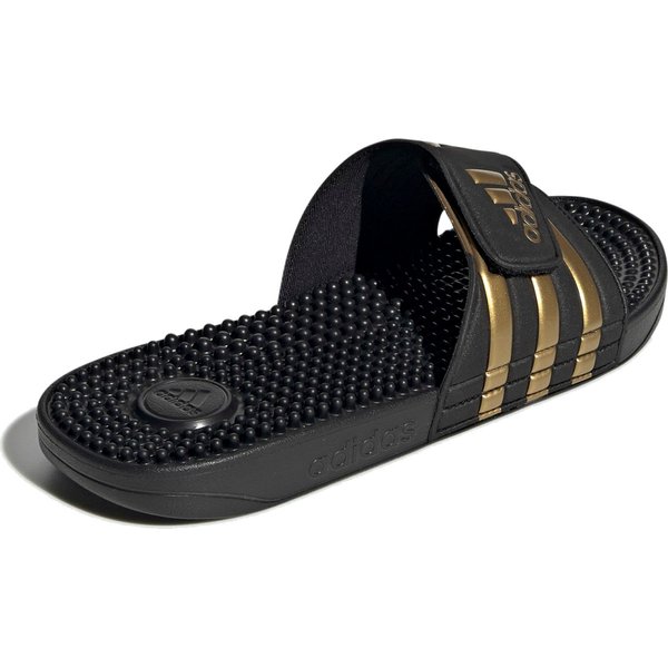 Klapki z efektem relaksu! Addisage od Adidas posiadają delikatnie masujące wypustki na wewnętrznej stronie, dzięki czemu zapewnią komfort zmęczonym po treningu stopom.