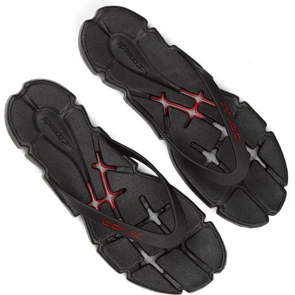 Klapki na basen Speedo Katahama Thong wykonane w technologii Speedo Biofuse. Posiadają kanaliki odprowadzające wodę na zewnątrz, co zapewnia komfort. Dodatkowo podeszwa posiada wkładki z gumy zapobiegające poślizgnięciom.