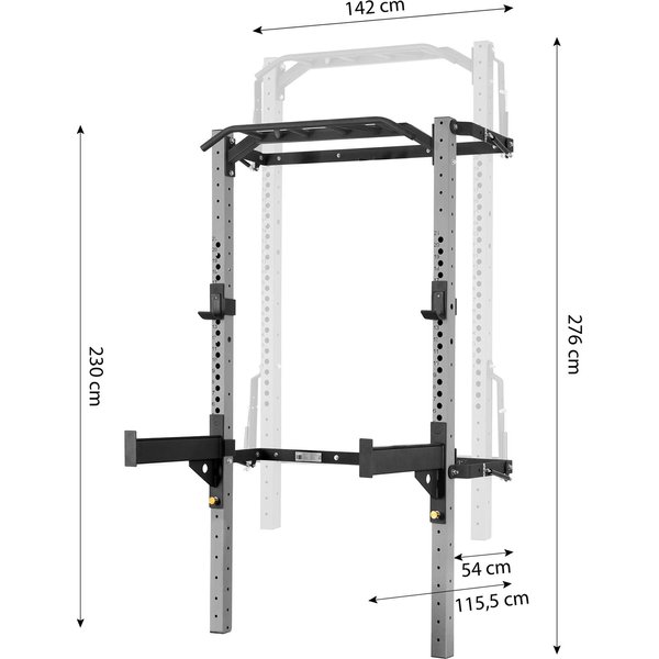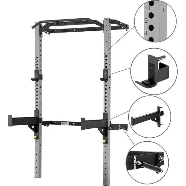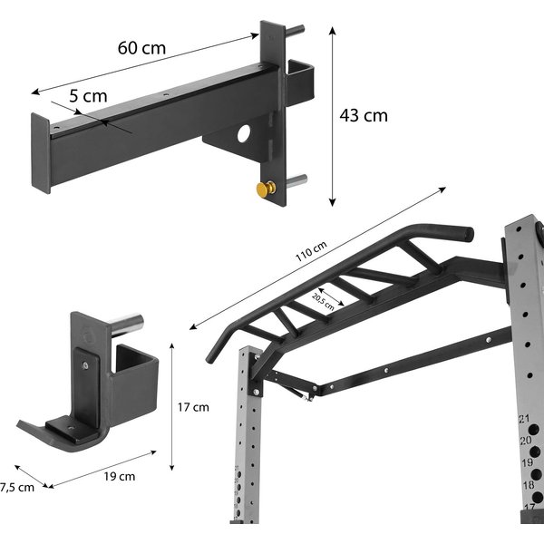 Jedną z głównych cech klatki jest drążek do podciągania, który umożliwia rozwijanie mięśni pleców, ramion i klatki piersiowej. Różne możliwości chwytu pozwalają na różnorodne i efektywne treningi. Dodatkowo, klatka posiada haki pod gryf, które można zamontować na dowolnej wysokości. To idealne rozwiązanie dla osób, które preferują trening z użyciem sztangi.