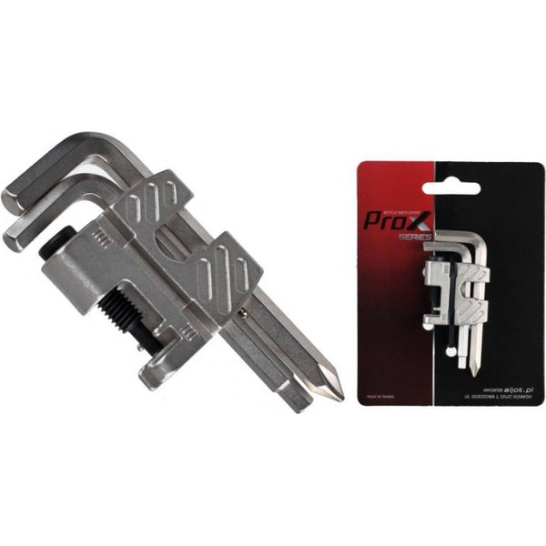 Klucz multifunkcyjny z skuwaczem Prox powinien znaleźć się w niezbędniku każdej aktywnej osoby. Może on uratować Cię z niejednej opresji. Posiada on wiele funkcji, które przydadzą się w domu oraz podczas wycieczek. Znajdziesz tam m.in.: klucz imbusowy, wkrętak krzyżowy oraz klucz płaski.