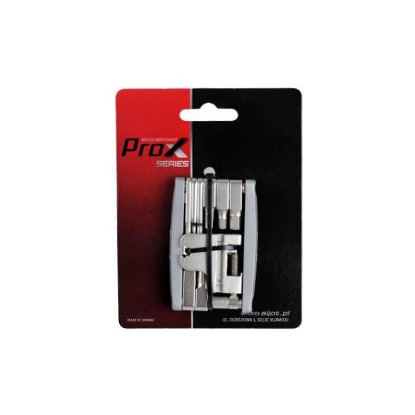 Z składanym narzędziem rowerowym FF-24 marki Prox błyskawicznie dokonasz naprawy drobnych usterek. FF-24 posiada 6 kluczy imbusowych, 2 wkrętaki, skuwacz od łańcucha oraz klucze do nakrętek szprych. Wykonanie z wysokiej jakości stali gwarantuje optymalną wytrzymałość narzędzia.