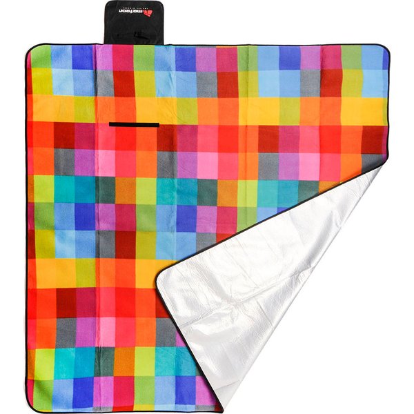 Polar, z którego wykonano ten koc, charakteryzuje się miękkością, a także dobrą ochroną przed wilgocią płynącą z podłoża. Jako podbicie koca zastosowano materiał EPE gwarantujący rewelacyjne parametry termoizolacyjne. Dodatkowo spód pokryto cienką warstwą aluminium zapobiegającą przemoczeniu. Złożenie koca jest banalnie proste, a doszyta rączka ułatwia jego przenoszenie. Duży rozmiar koca sprawia, że pomieści on całą rodzinę lub paczkę przyjaciół. Kolorowa, dynamiczna grafika tylko spotęguje radość ze wspólnego posiłku na świeżym powietrzu.
