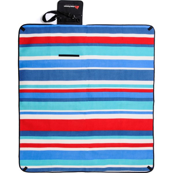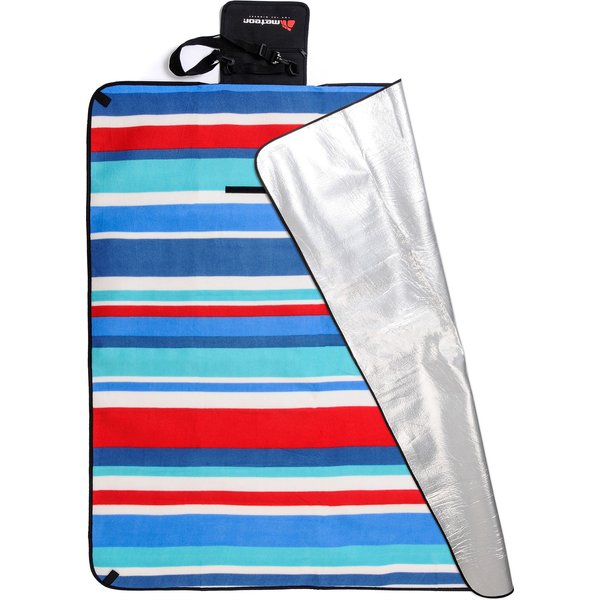 Koc piknikowy Meteor to idealny wybór dla wszystkich miłośników pikników, plażowania i czasu spędzonego na łonie natury. Został wykonany z wysokiej jakości polaru, zapewniającego miękkość i ochronę przed chłodniejszym podłożem. Dzięki temu korzystanie z koca jest jeszcze bardziej komfortowe. Dodatkowo, koc został wyposażony w cienką warstwę aluminium, która zapobiega przemoczeniu. Łatwe złożenie, zajmowanie niewiele miejsca oraz dodatkowe uchwyt i pasek na ramię ułatwiają jego przenoszenie. Koc posiada również kieszeń zamykaną na zamek błyskawiczny, umożliwiającą przechowywanie drobiazgów. Dzięki pętelkom przymocowanie do podłoża za pomocą śledzi jest proste. Wzór w paski na pewno przyciągnie uwagę i sprawi, że koc będzie cieszył przez długi czas.