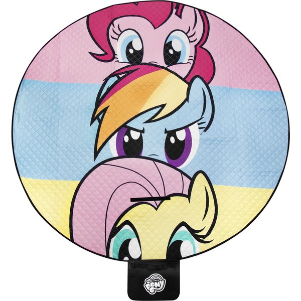 Okrągła konstrukcja ma 150 centymetrów średnicy. Przestrzenny koc idealnie sprawdzi się podczas rodzinnych wypadów do parku, czy zabaw w ogrodzie. Aluminiowy spód łatwo się czyści, materiał dodatkowo zapewnia świetną izolację przed temperaturą podłoża. Składa się do niewielkich rozmiarów, co w połączeniu z niewielką wagą ułatwia przechowywanie i transport. Dołączony pasek z regulacją sprawia, że koc możesz wygodnie przewiesić na ramieniu jak torbę. Największym atutem jest kolorowy design z postaciami kreskówki My Little Pony. Solidne wykonanie sprawia, że model na długo zachowa swój wygląd i jakość.
