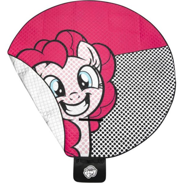 Okrągła konstrukcja ma 150 centymetrów średnicy. Przestrzenny koc idealnie sprawdzi się podczas rodzinnych wypadów do parku, czy zabaw w ogrodzie. Aluminiowy spód łatwo się czyści, materiał dodatkowo zapewnia świetną izolację przed temperaturą podłoża. Składa się do niewielkich rozmiarów, co w połączeniu z niewielką wagą ułatwia przechowywanie i transport. Dołączony pasek z regulacją sprawia, że koc możesz wygodnie przewiesić na ramieniu jak torbę. Największym atutem jest kolorowy design z postaciami kreskówki My Little Pony. Solidne wykonanie sprawia, że model na długo zachowa swój wygląd i jakość.
