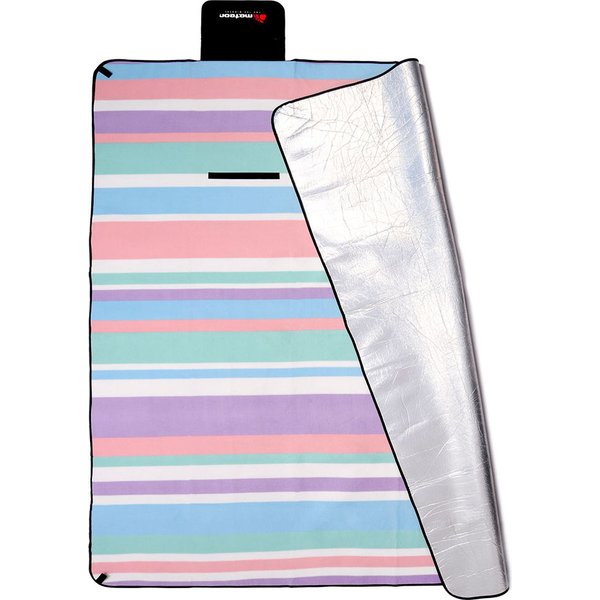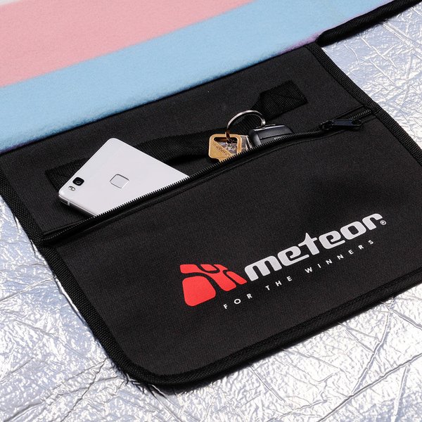 Koc piknikowy XL 180x200cm Meteor idealny do spędzania czasu z rodziną lub przyjaciółmi na świeżym powietrzu. Materiał, z którego został wykonany koc, to wysokiej jakości polar, który jest miękki w dotyku, a także chroni przed chłodnym podłożem. Koc posiada wysokie parametry termoizolacyjne, a spód pokryty warstwą aluminium chroni przed przemoczeniem. Jest to produkt idealny na wypady na łono natury, a jego przenoszenie ułatwia rączka oraz pasek na ramię. Dodatkowym atutem jest kieszeń, w której można schować swoje drobiazgi.
