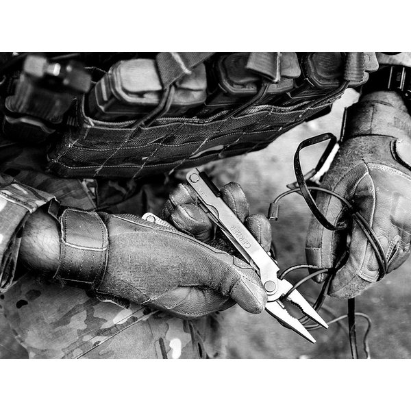 System zabezpieczający zapobiega złożeniu się konstrukcji w trakcie pracy. Multitool wygodnie otworzysz jedną ręką, a do dyspozycji masz aż kilkanaście narzędzi, m.in.: kombinerki, przecinak, śrubokręty, otwieracz, pilnik czy nóż.