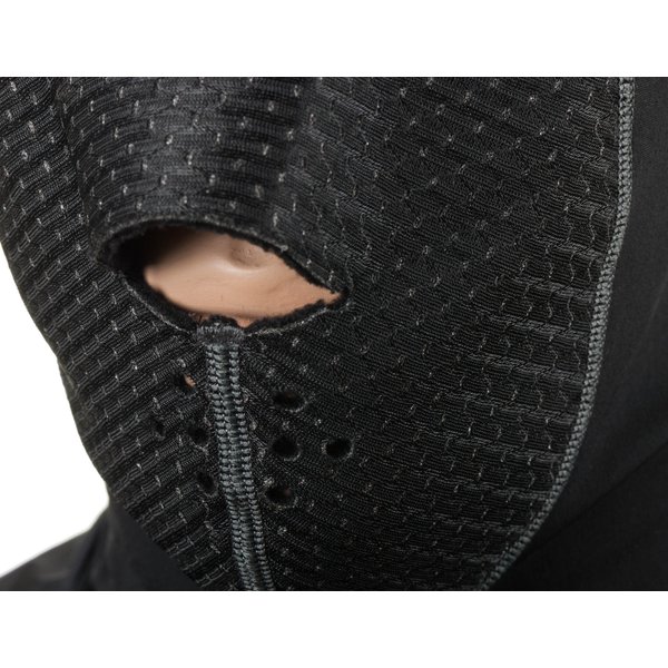 Kominiarka wykonana z membrany o doskonałej izolacji termicznej, a zarazem oddychającej i antyalergicznej. Pozostała część kominiarki jest wykonana z najwyższej jakości dzianiny Carvicco, dzięki której kominiarka jest bardzo elastyczna i doskonale dopasowuje się do kształtu głowy. Obie dzianiny są wykończone od spodu bardzo delikatnym i miękkim meszkiem. Te zalety oraz płaskie szwy (autolap) zapewniają najwyższy komfort użytkowania.