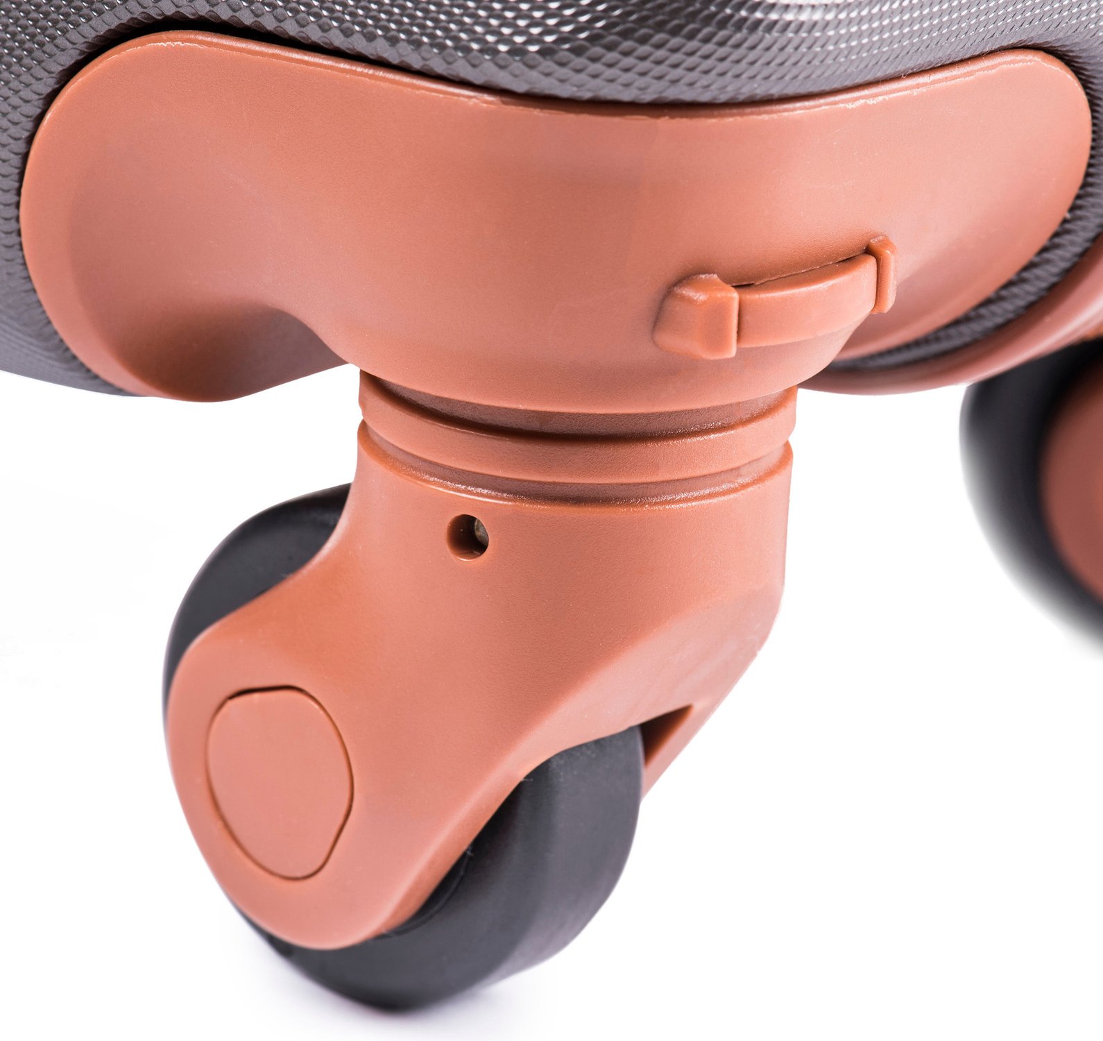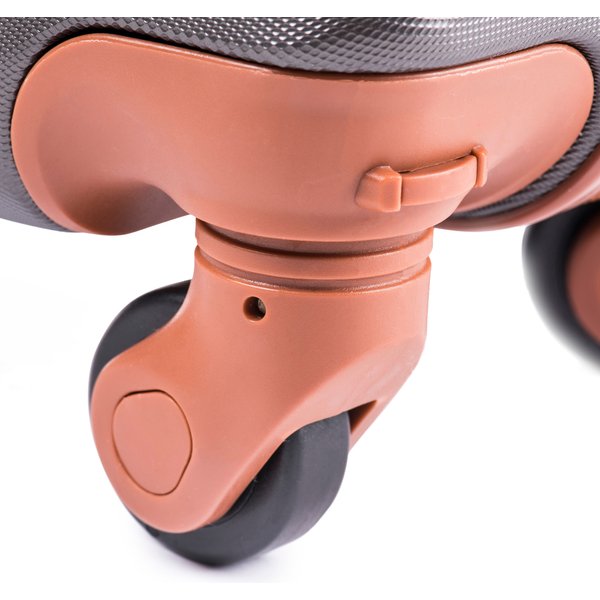 Wszystkie modele zostały wykonane z wytrzymałego i odpornego na zarysowania tworzywa ABS. Jest ono dodatkowo nieprzemakalne, nie powoduje odkształceń oraz jest łatwy w utrzymaniu czystości. Za wygodę przenoszenia bagażu odpowiadają dwupoziomowe, teleskopowe rączki oraz dodatkowe uchwyty z boku i u góry. Natomiast wewnętrzne komory oddzielone zamkiem, posiadają dodatkowe pasy mocujące, które zabezpieczą Twój bagaż przed przemieszczaniem się.
