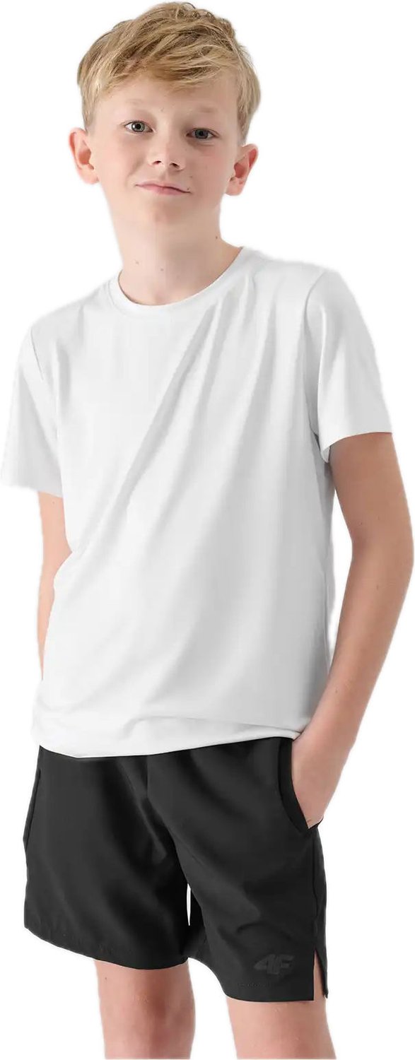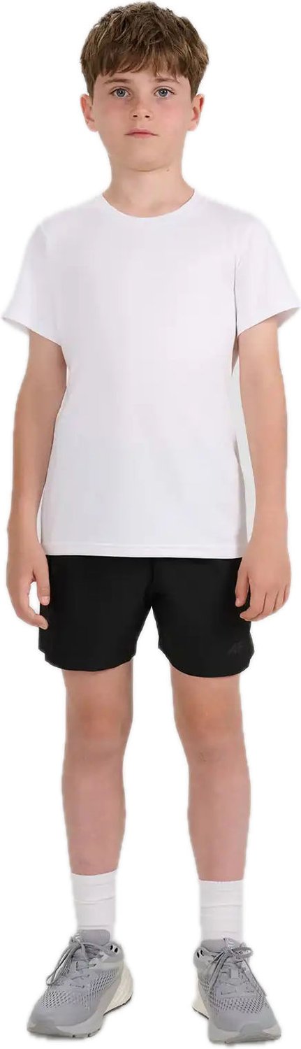 Komplet chłopięcy sportowy od 4F to idealne rozwiązanie dla aktywnych młodych sportowców, którzy cenią sobie komfort i styl. Koszulka wykonana z elastycznej, szybkoschnącej dzianiny zapewnia swobodę ruchów i komfort podczas intensywnych zabaw. Szorty, z lekkiej dzianiny, z elastycznym pasem i bocznymi rozcięciami, umożliwiają dopasowanie i przewiewność, co jest nieocenione w cieplejsze dni. Dodatkowo worek ze sznurkami oferuje wygodę noszenia i praktyczny uchwyt, idealny do zawieszenia w szatni.