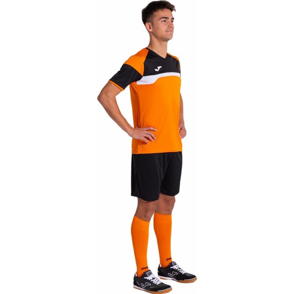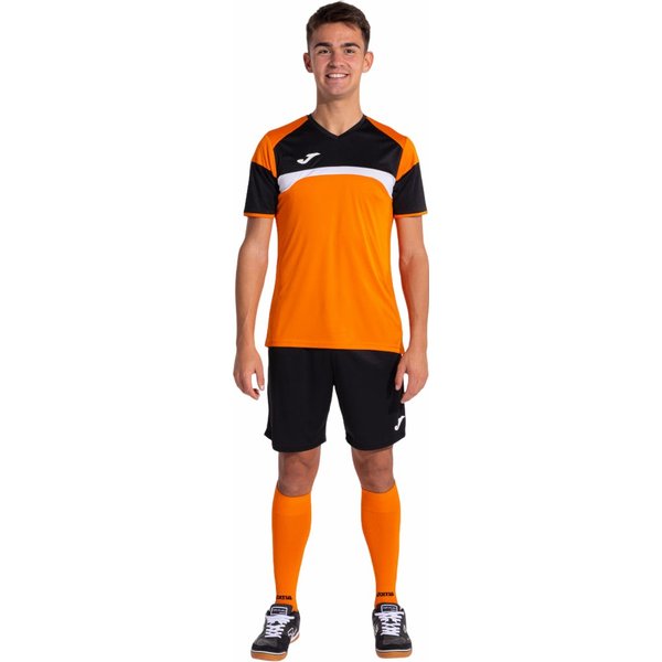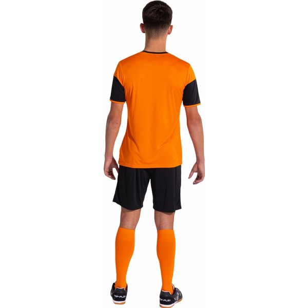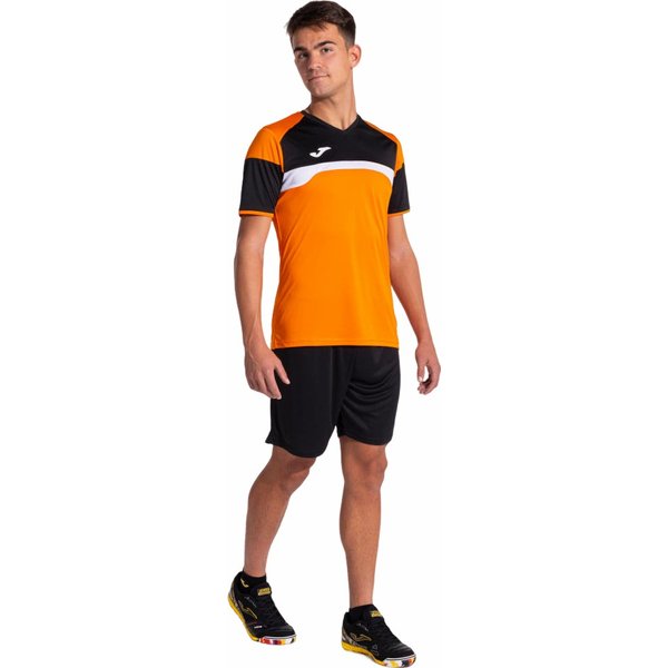 Komplet piłkarski męski Danubio III Set to idealny zestaw do treningu i gry w piłkę nożną. Składa się z lekkiej koszulki z krótkim rękawem oraz spodenek, które zapewniają doskonałą swobodę ruchu. Koszulka posiada wycięcie w kształcie litery V z elastyczną taśmą dla optymalnego dopasowania. Kontrastowe detale dodają stylu, a logo Joma jest umieszczone z technologią druku. Spodenki mają regulowany elastyczny pas oraz wykonane są z wytrzymałego materiału, który pomaga regulować pot. Komplet jest idealny dla aktywnych mężczyzn, zapewniając wygodę i funkcjonalność podczas treningów i meczów.