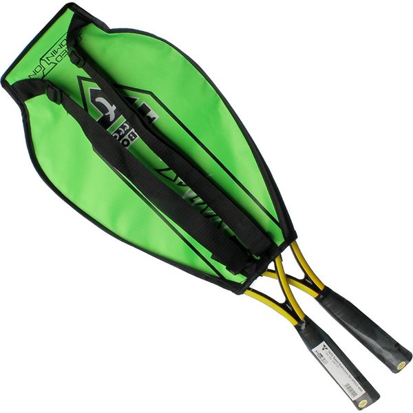 Speed badminton to sport, który pokochają wszyscy - możesz grać, gdzie chcesz, z kim chcesz i kiedy chcesz! Jeśli chcesz się przekonać, ile frajdy dostarcza granie w speed badmintona, to jeszcze dziś zamów komplet S4000 niemieckiej marki Talbot Torro. W zestawie znajdziesz wszystko, czego potrzeba do rozegrania meczu speed badmintona. 2 aluminiowe rakietki mają 54,5 cm długości, są więc krótsze od tradycyjnych modeli, którymi gra się w badmintona. Mimo tego, że są mniejsze, to posiadają bardziej wytrzymały naciąg, dzięki czemu możesz odbijać cięższe lotki, a gra w speed badmintona jest szybka i bardziej efektowna od innych odmian tego sportu. Ponadto w skład zestawu wchodzą 3 nylonowe lotki, które są cięższe od tradycyjnych i dzięki temu są odporne na wiatr. Możesz więc grać niezależnie od warunków, a lotki przechowasz w wygodnej plastikowej tubie, która gwarantuje, że ich nie zgubisz. Po skończonej grze zarówno rakietki, jak i lotki schowasz do zapinanego na suwak pokrowca, który dodatkowo posiada pasek na ramię.