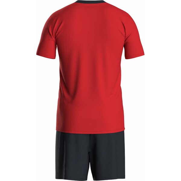 Komplet sportowy męski Set Victory Joma to idealny wybór dla aktywnych mężczyzn. Składa się z lekkiej koszulki z krótkim rękawem i spodenek, zapewniających doskonałą swobodę ruchu podczas treningów czy gry w piłkę nożną. Koszulka posiada zaokrąglony dekolt z elastyczną taśmą i krótki rękaw. Spodenki natomiast mają regulowany pas za pomocą wewnętrznego sznurka. Wykonane z wytrzymałego materiału, są oddychające i przyczyniają się do regulacji potu. Dodatkowo zdobi je haftowane logo marki Joma. Ten kompletny i stylowy zestaw z pewnością podniesie komfort Twoich treningów.