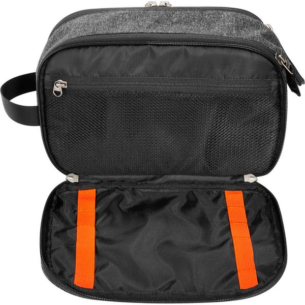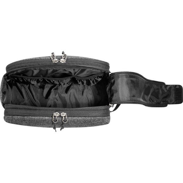 Kosmetyczka Cosmetic Double Zip Pouch Tatonka to idealny towarzysz podróży. Wykonana z trwałego materiału T-Travel Tex Melange Eco, jest lekka i wytrzymała. Jej wymiary wynoszą 17 x 27 x 13 cm, a pojemność 6 litrów, co pozwala na przechowywanie wszystkich niezbędnych kosmetyków. Praktyczne przegródki w komorze głównej umożliwiają łatwe organizowanie zawartości. Dodatkowo, możliwość całkowitego otwarcia komory głównej za pomocą podwójnego zamka błyskawicznego ułatwia dostęp do wszystkich przedmiotów. Kosmetyczka posiada również przednią komorę zapinaną na zamek błyskawiczny oraz elastyczne pętle i wewnętrzną kieszeń z siatki, które zapewniają dodatkową przestrzeń do przechowywania. Przegroda na zamek błyskawiczny z tyłu zapewnia bezpieczne przechowywanie drobnych przedmiotów.