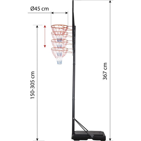- wysokość obręczy: 1,5 – 3,05 m