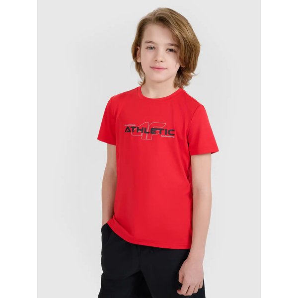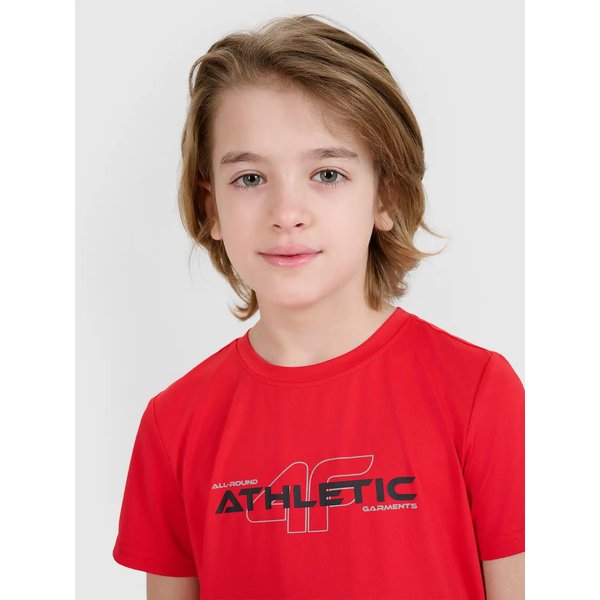 Koszulka chłopięca marki 4F to idealny wybór dla młodych sportowców, którzy cenią sobie komfort i swobodę ruchu podczas treningów. Wykonana z szybkoschnącego materiału, doskonale odprowadza wilgoć dzięki technologii 4FDry, co zapewnia uczucie suchości i świeżości przez cały czas aktywności. Elastyczność i trwałość tkaniny, wzbogaconej o 10% elastanu, gwarantują doskonałe dopasowanie do sylwetki i pełną mobilność. Prosty, regularny krój oraz klasyczny okrągły dekolt nadają koszulce sportowy, nowoczesny wygląd. To doskonały wybór zarówno na zajęcia WF, jak i codzienne wyzwania.